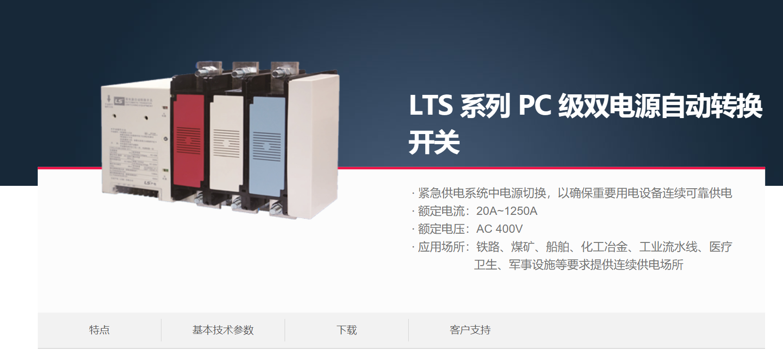 當(dāng)前位置網(wǎng)站首頁(yè) > 產(chǎn)品展示 > LS產(chǎn)電電氣元器件 > 微型斷路器&雙電源開(kāi)關(guān) > LTS 系列 PC 級(jí)雙電源自動(dòng)轉(zhuǎn)換開(kāi)關(guān) >