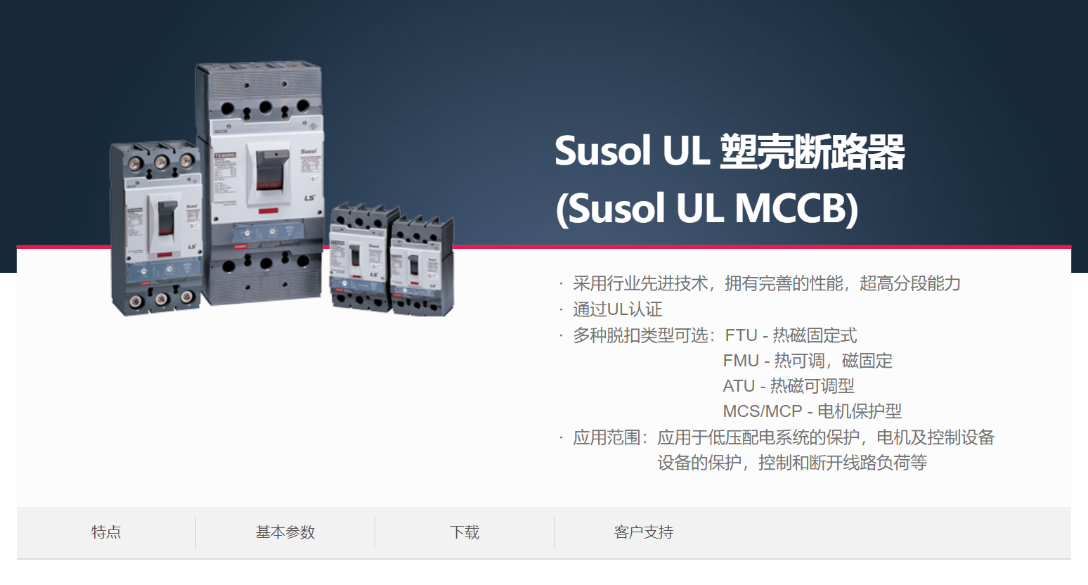 當(dāng)前位置網(wǎng)站首頁 > 產(chǎn)品展示 > LS產(chǎn)電電氣元器件 > 塑殼斷路器(MCCB) > Susol UL 塑殼斷路器 >